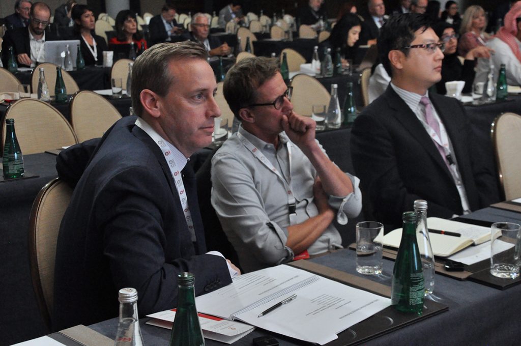 ABOVE: Udi Sheintal (left) and Jean-Pierre Chalain, respectively President and Vice President of the CIBJO Diamond Commission, during the body’s session at the CIBJO Congress in Bahrain on November 18, 2019.