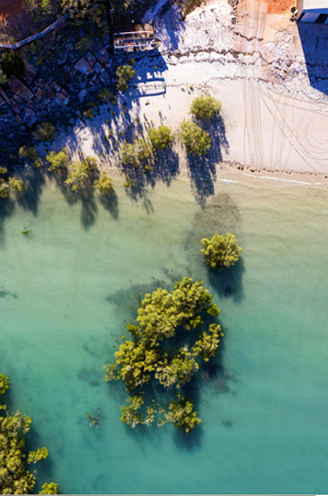 From top to bottom: Pinctada maxima hanging in net, the mangrove at high tide, and a White South Sea cultured pearl being harvested. Photos from the Cygnet Bay Pearl Farm, Western Australia.