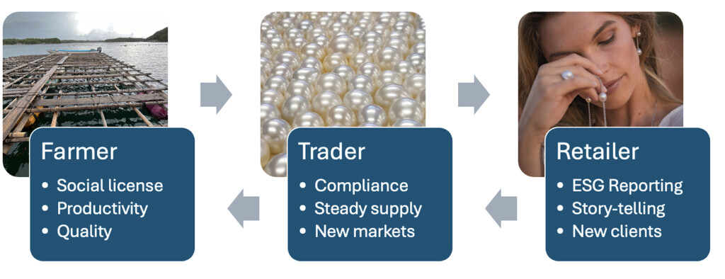 Onegemme, a B2B trading platform for single origin pearls, partnered in 2024 with Provenance Proof — a blockchain traceability service from the Gübelin Gem Lab in Switzerland — to provide transparent origin tracking and social and environmental impact profile. Each pearl sold includes a transferable provenance certificate, impact profile, and a detailed description.