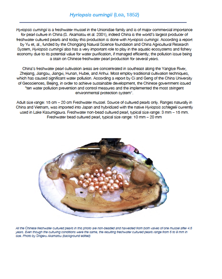 The guide describes and illustrates 43 pearl-producing saltwater nacreous and non-nacreous bivalves in alphabetical order, many of which will be new to even those involved professionally in the pearl industry. It also describes 23 pearl-producing saltwater nacreous and non-nacreous univalves, followed by 27 freshwater bivalves that are producers of nacreous (sometimes non-nacreous) natural and cultured pearls, as well as natural blisters, blister pearls and cultured blisters.