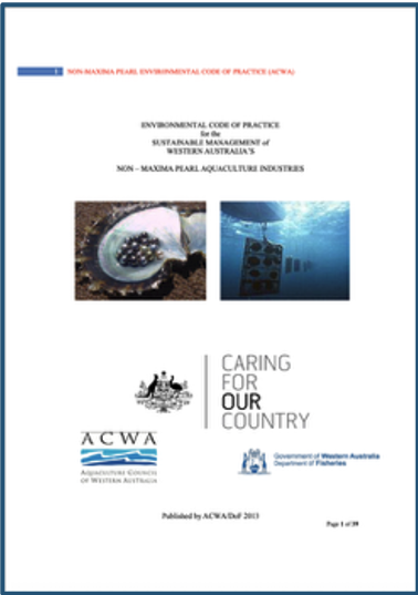 Examples of Code of Practices. top top bottom: J.Hunter; Fiji; Direction des Resources Marines, French Polynesia; Pearl Producers Association, Australia; Aquaculture Council of Western Australia (non-maxima), Australia; Agricultural Standard Publishing Research Center, China.